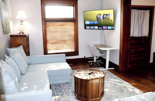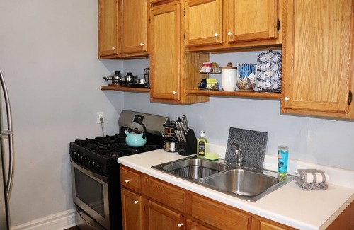The apartment is beautifully designed with a modern yet cozy feel, featuring hardwood floors throughout, a fully equipped kitchen, and a comfortable living area. Enjoy easy access to public transportation with the Green Line only a block away. This is the perfect location for exploring Oak Park and all it has to offer. Don't miss out on the opportunity to stay in this wonderful apartment during your next visit to the area. Book now and make your trip to Oak Park one to remember!