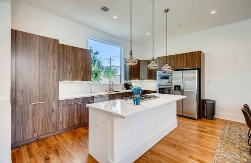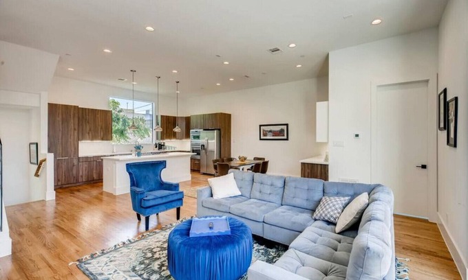 If you are looking for an ideal wedding accommodation, look no further than Mins To DT Houston /4-Story/7 Beds /City Views. This contemporary townhome provides a remarkable space perfect for hosting your celebration and accommodating your guests.