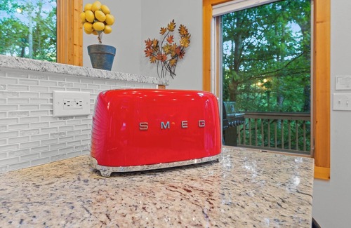 Cook up delicious meals in the fully stocked kitchen with brand-new stainless appliances. Enjoy your meals inside or out on the deck with mountain views — perfect for coffee, wine, and planning your next day’s adventure.