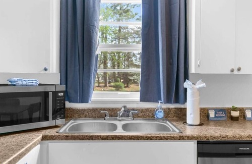 Guests will enter through the front door by using a digital keypad. Upon entry, the living room with a sofa bed, two armchairs, and a SmartTV is to the right, and a small office nook with a desk and chair is to the left. Through the living room is the fully-equipped kitchen with a dining table that seats four. Left of the living room is the master bedroom with a king bed and an ensuite bathroom. This bathroom has a shower/tub combination. Right of the living room is the additional three bedrooms and full bathroom. The first and second rooms have full beds. The last has two twin-over-twin bunk beds. The second full bathroom is between the three rooms and has a shower/tub combination. A charcoal grill is available on the back deck. ***A pack 'n play/travel crib is available upon request.***