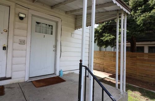 Triplex home divided into three apartments. Your apartment is in the back of the home with an upstairs level, one flight of stairs. Back door private entrance..