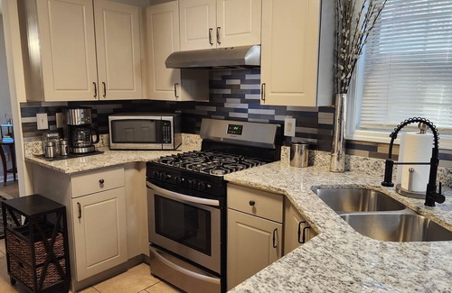 Newly remodeled and furnished home in Fulton County with remote control 2 car garage, security lights and multi-port USB & type "C" outlets. Ideal work from home office area, private backyard with patio, grill and lawn furniture. 10 minutes from Hartsfield Jackson Airport, 20 minutes from Atlanta. Between 20 and 35 minutes to The Battery, Tyler Perry Studios, Trilith Studios, 6 Flags, GA Aquarium, The World of Coke, Benz Stadium and many other attractions. Within 25 minutes of Alanta University Center (AUC: Clark Atlanta, Morehouse College, and Spelman College). Same amount of distance to Georgia State University as well as Georgia Tech. Less than 1/4-mile walking distance to the Bedford School. Kingly located 5 minutes from I-85 and only 10 from Marta Mass Transit to get you all around the city. There is a plethora of eateries located in the area.