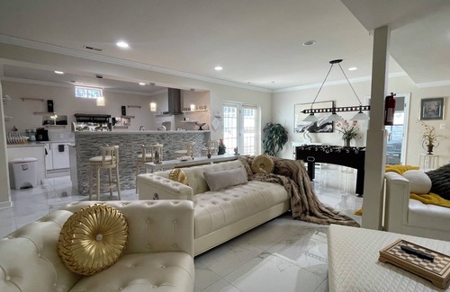 Best-rates for the Calverton house starts from $307 per night with includes Laundry, Air Conditioner, Parking, Bedding/Linens, Wellness Facilities, Child Friendly, Internet, Kitchen, TV, Security/Safety, Sports/Activities, Fireplace/Heating, Guest Services with all other amenities. Perfect for Weddings is committed to ensuring every guest experiences a comfortable and extraordinary stay, whether planning a romantic getaway, a honeymoon, a pet-friendly stay, or celebrating with the entire wedding party.