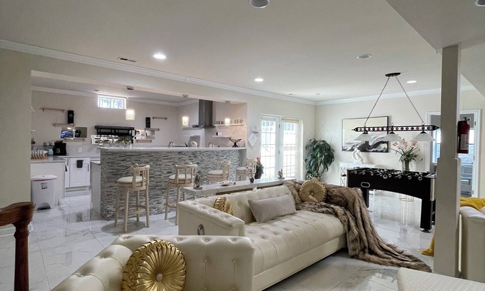 Escape to our luxurious guest suite, an oasis of comfort, elegance, that is the lower level/basement of the main house, a hidden gem exceeding hotel standard. Remodeled to perfection, this suite offers a stylish, comfortable retreat. Experience an unforgettable stay that surpasses all expectations. With its own private entrance, you'll enjoy complete privacy/convenience. Immerse yourself in contemporary elegance with our meticulously designed suite, featuring sleek furnishings, top-of-the-line amenities, and a serene ambiance. Enjoy high-speed Wi-Fi, a state-of-the-art entertainment system. Located in the heart of the DMV, you're just minutes away from premier dining, shopping, and attractions. Perfect for business travelers and vacationers. This exquisite retreat features 3 spacious bedrooms, with its own private bathroom, offering guests privacy/conveniences. Each bedroom is equipped with a plush Queen-size bed for ultimate relaxation/top-of-the-line hotel accessories.