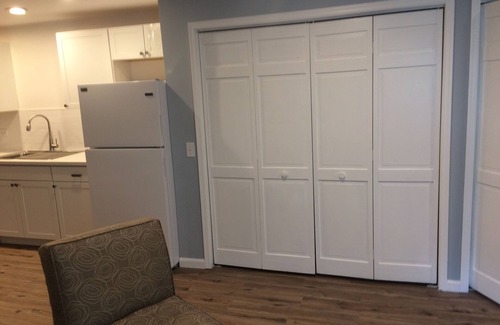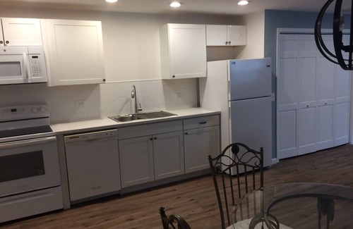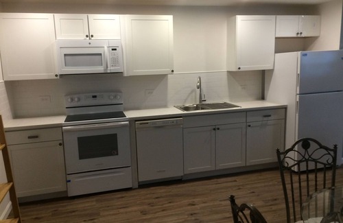 Private entrance with off-street parking. Full kitchen with disposal, ice-maker in frig, stove, microwave over stove, dishwasher and stack washer/dryer in bathroom. 10 by 10 deck at front entrance.