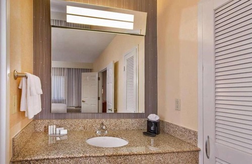Our modern and exquisitely designed property highlights all you need for a wonderful vacation. Begin your day with a rejuvenating swim in the outdoor pool, dine on freshly prepared American cuisine in the onsite restaurant, and make your choice from the delicious selection of local drinks and cocktails on the menu. For an idyllic experience, each spacious suite is furnished with a coffee/tea maker, a microwave, a mini-fridge, a flat-screen TV with HBO channels, private bathrooms, workspaces, and soft beds that would ensure guests have a tranquil environment for either leisure or work. Alongside this, to keep active, there’s a gym on the premises for business gatherings, there's a large conference room, and a business center that offers high-speed internet for printing and faxing services.