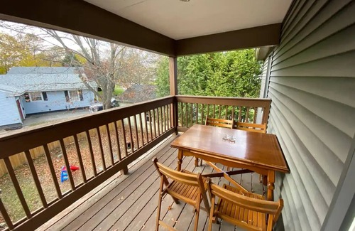 The space features a spacious eat in kitchen, large living room, and a balcony with outdoor dinning space. This is a second floor unit. Off street parking for 2 vehicles. Sleeps 4.