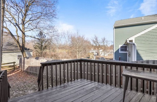This inviting home features six spacious bedrooms and three full bathrooms, accommodating up to 14 guests with ease. Enjoy modern amenities including Wi-Fi, Smart TVs, and a finished basement with additional sleeping spaces. The well-equipped kitchen allows you to prepare pre-wedding meals or host intimate gatherings, while the lovely deck and patio provide outdoor spaces for relaxation. You can also make use of convenient parking options with a garage and driveway, ensuring hassle-free access for all your wedding party members.