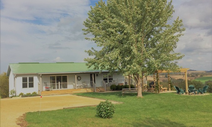 Set on twenty-two acres of beautiful rolling hills, Bird Cottage at Sorriso Vineyard offers you a unique opportunity to relax and unwind. Located just ten miles from Galena, Illinois, our charming cottage overlooks a private vineyard with long views from every room. Beautifully decorated in modern farmhouse style, stay in and enjoy the wrap-around front porch and deck with plenty of seating and dining options for entertaining. Or enjoy Galena's restaurants, wineries, shopping and golf. Share a bottle of wine around the firepit and view the awesome sunsets and huge night sky. We offer internet, satellite TV, Google Assistant speaker system and a fantastic pool table for a fun vacation at your home away from home.