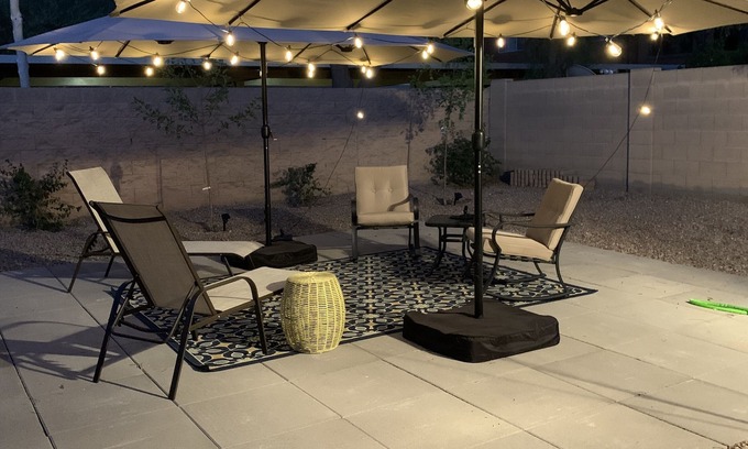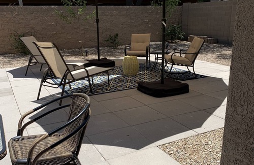 Backyard patio, quiet cul-de-sac, attached garage. One minute to the 10 and east to downtown Phoenix (baseball, shopping, museums, ) or head west to Palm Springs or LA. One minute to the 110 and head north to Glendale sports facilities (hockey, football) or northern Phoenix, Glendale, Sun City or Las Vegas!