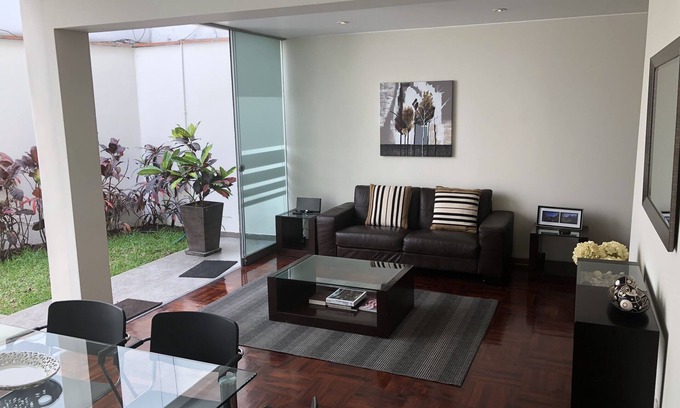 Only two blocks from the famous 'Malecon de Miraflores' (Boardwalk) great for walking, jogging, biking etc, and the majestic view of the Costa Verde and the Pacific Ocean; and three blocks from Larco Mar Mall, the best and most exclusive mall in Miraflores and Lima. Great for shopping, dining, movies, theaters, bowling and more.