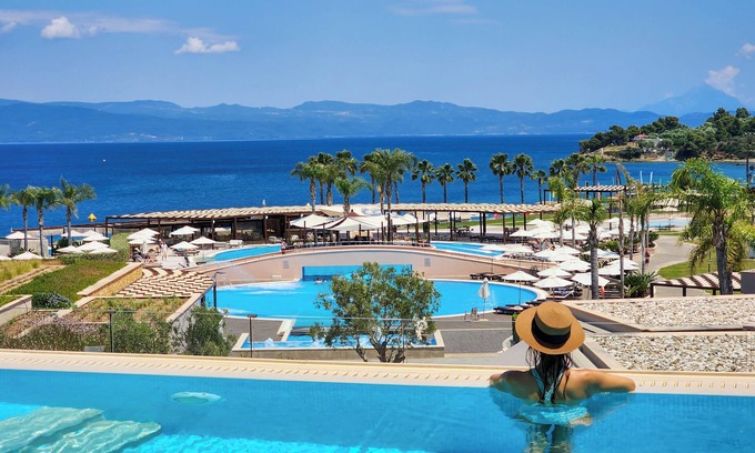 If you're looking for an exquisite wedding stay, the Miraggio Thermal Spa Resort offers a luxurious backdrop on the beautiful Kassandra coast. This beachfront resort is designed to elevate your special day with exceptional amenities and stunning surroundings.
