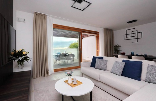 Located in the picturesque fishing village of Portopiccolo, this prestigious apartment represents the ideal destination for families, couples, or groups of friends seeking a relaxing and rejuvenating break. With a panoramic sea view and an atmosphere of absolute tranquillity, the property offers an immersive experience in the charm of the Mediterranean, thanks also to its privileged position just a few steps from the water.