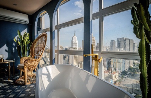 Fall in love with the stunning view from the 37th floor of this unique apartment in São Paulo. In one of the most historic buildings in the city, the property offers a charming and sophisticated environment, with a bathtub next to the window, automated blinds for an INCREDIBLE experience. The Marrakech-inspired style, with shades of blue and pink, creates a perfect refuge for those looking for comfort and beauty in one place.