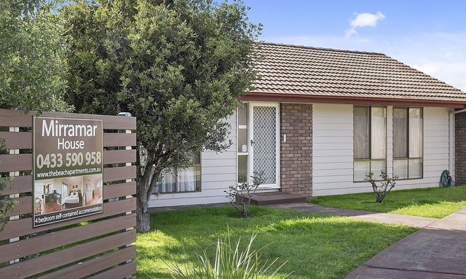 There are 2 queen and 4 single beds accommodating 8 guests (plus an additional fold out bed or portacot if required). There are two living areas. One has a large flat screen TV and DVD/VCR. The other is perfectly located to enjoy the sun while relaxing with a good book or enjoying the view of the ocean. There is a deck with BBQ and outdoor furniture that also has a view. The main bathroom has a shower and spa in bath with a separate toilet. The one queen bedroom located downstairs bedroom has an ensuite. The house has full kitchen facilities with dishwasher, microwave, fridge and oven and a washing machine and dryer are provided. Mirramar House is fully furnished and includes all linen and other items that you need to self cater, whether for a week or a couple of months. So whether you are after the beach, a home away from home or relaxation this is the place to do it!