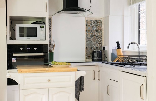 Charming one-bedroom West London home with garden and free parking. Peaceful location with easy transport links. Sofa bed available for a third guest. Ideal for solo travellers or couples.