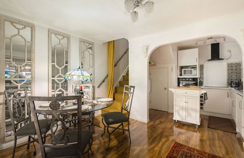This colourful one-bedroom cottage blends modern design with rustic charm in a quiet residential development in West London. With a delightful garden, free on-site parking and excellent transport links, it’s the perfect retreat for solo travellers or couples – with space for one additional guest on request.