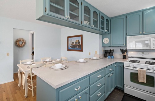 Downstairs in the second connected unit, you'll find two additional bedrooms, a full bathroom with tub/shower combo, and in-home laundry. Ideal for kids or extra guests, one bedroom features a fun twin/twin bunk and a daybed with trundle.