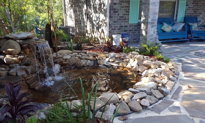 Gulf of Mexico Tropical Oasis on Graveline Bayou across street from the Gulf in Gautier, Mississippi. Only 10-15 minutes to Biloxi casinos, golf, outdoor water sports, beaches, fishing and numerous seafood restaurants. Quiet area on deadend street to Gulf within 500 feet, a short walk to view the Gulf. Catch fish or blue crabs in backyard. (Baskets/traps provided). Launch your kayak or canoe in backyard. Less than 1/4 mile from back yard to Gulf open water or explore the bayous. Sleeps 8 comfortably, new appliances, furniture, new pergola, 10x10 concrete dog kennel and outdoor furniture. Beautiful tropical landscaped yard complete with cascading waterfall. $175.00/nt standard rate or $1100.00 discounted weekly rate. Monthly discount available too.