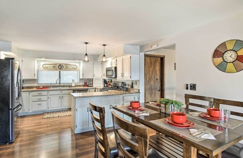 Located on the shores of the Mississippi River, this 3-bedroom, 2-bathroom Thomson home is the perfect spot for your next getaway with family or friends! The vacation rental has all the essentials for a stress-free stay, including a full kitchen, a game room, and an outdoor dining area. Launch your boat from the nearby boat ramp, cast your line from the backyard, or hit a hike in the Mississippi Palisades State Park. In the evening, relax under the stars and enjoy s’mores around the fire pit.