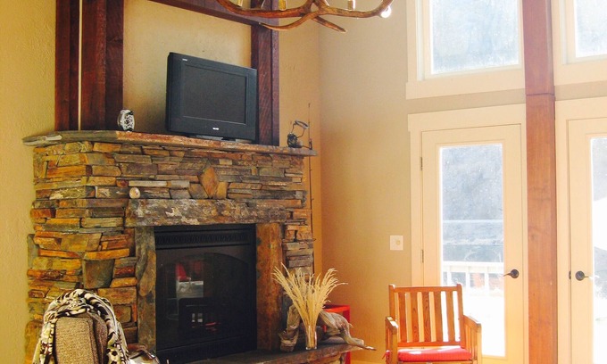 This charming property has a wall of windows for the beautiful view of the Missouri River and rock cliff landscape. It has a large deck and fire pit for enjoying the evenings, reminiscing about your day of fishing on the Mighty Mo. If you want to bring your family or friends for a couple days or more for a laid back getaway, this is the place. This home has 2 bedrooms and 2 baths. The master has a king bed, the guest bedroom has 2 XL Twins. It has a queen sofa sleeper in the living room , with an air-over-coil mattress. The house can sleep up to 6 people. NOTE: the Bonus room in the garage is made available when there are 5 or more guests. It has 1 XL twin and 1 queen bed. Our bungalow has air conditioning, a fully stocked kitchen, a BBQ, a two way fireplace, vaulted living space, hardwood floors, stone showers, and washer and dryer. We have a landline, internet service, and satellite TV. A 50" Smart TV .