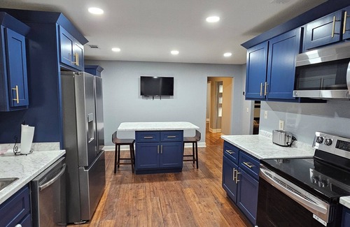 "Misty Blue"-Newly Renovated home in Blytheville has 2 Bedrooms , 1 Bathroom, and max occupancy of 6 people. The minimum rental for this property is 1 nights, but this can change depending on the season you plan on staying. Previous guests have given good rated it, and VRBO labeled it a top-rated House because of the excellent services rendered by the owner or manager of this House, and has consistently provided great experiences for their guests. Most families or guests that use it recommend it to their friends and some of them are repeat guests. House has a friendly neighborhood, and the Blytheville has interesting places to visit. If you want to learn more about the House in Blytheville, such as places to visit and things to do nearby, you can check below to learn more.