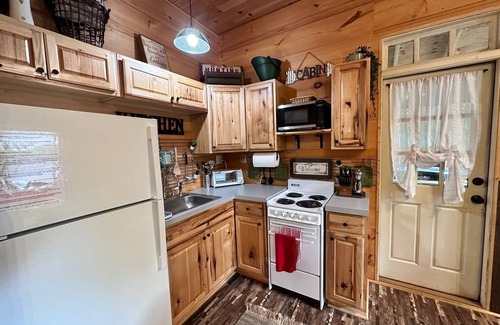 Cabin in beautiful woodsy setting covered porch, Slps 5, firepit, 30 mins to Blowing Rock and Tweetsie RR and Blue Ridge Parkway. Come inside and experience a storybook cabin with open kitchen, eat at bar and living room, smores makings and a coffee station. All one level and fully equipped kitchen complete with a coffee center. Bedroom with queen, sleeper sofa in living room and a single bunk in laundry area.