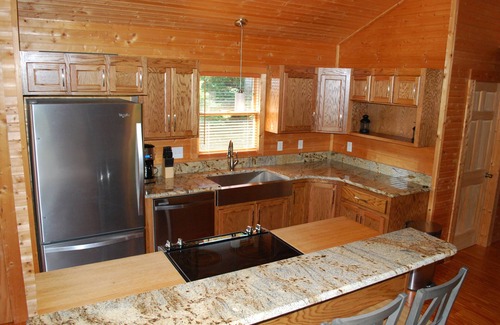 Secluded, an immaculate cabin in a gated community with easy access to Wilkesboro, Boone and Blowing Rock. Beautifully updated with granite counter tops, stainless steel appliances, hot tub, dishwasher, and a gas log stove, this two-bedroom, one-bath cabin is perfect for families, couples or small groups.