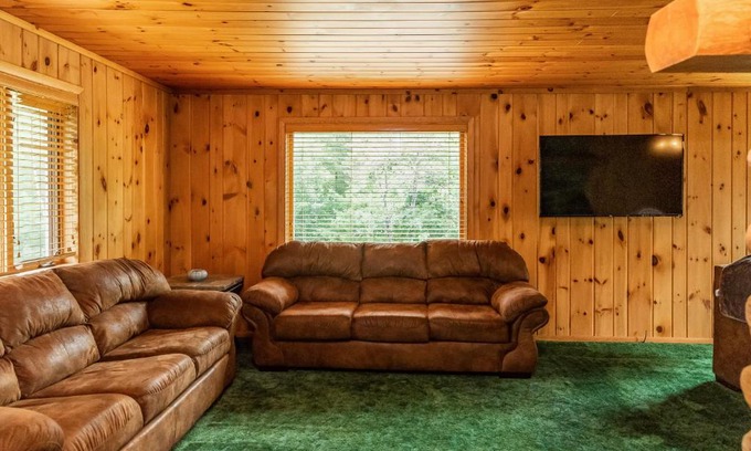 - Riverfront vacation home with a dock, wood stove, full kitchen, & firepit