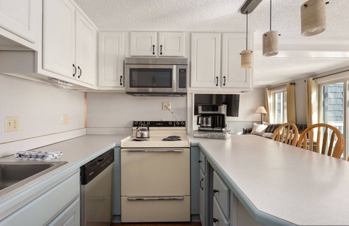 The fully equipped kitchen is a chef’s dream, featuring an island with four chairs, and everything you need to prepare meals for your group such as Stove, Oven, Microwave, Fridge, Coffee maker, Dishwasher, Toaster, and more for easy cleanup.