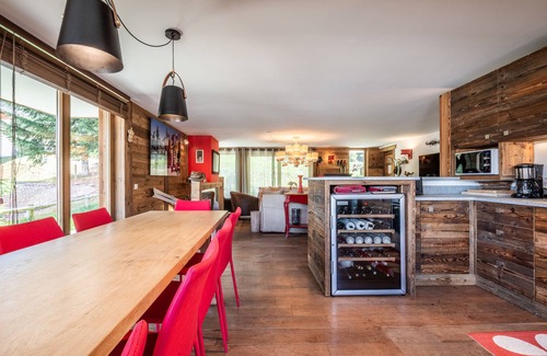 Moabi is a modern apartment in a beautiful chalet of Le Praz. Just next to the slope of Jean Blanc, it offers ski-in and ski-out access. This property features 5 bedrooms and 5 bathrooms, modern equipment as well as a fully-equipped kitchen. A sauna, a jacuzzi, a spacious outdoor area with a private garden, a fireplace, an underground garage as well as a ski locker are also at your disposal. This apartment is completed to a high level finish using considered materials and design. Last but not least, the view is great and the surroundings charming.