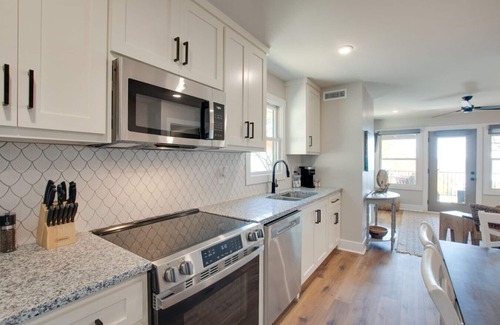Full Kitchen with modern appliances, cookware, and a Keurig coffee station.