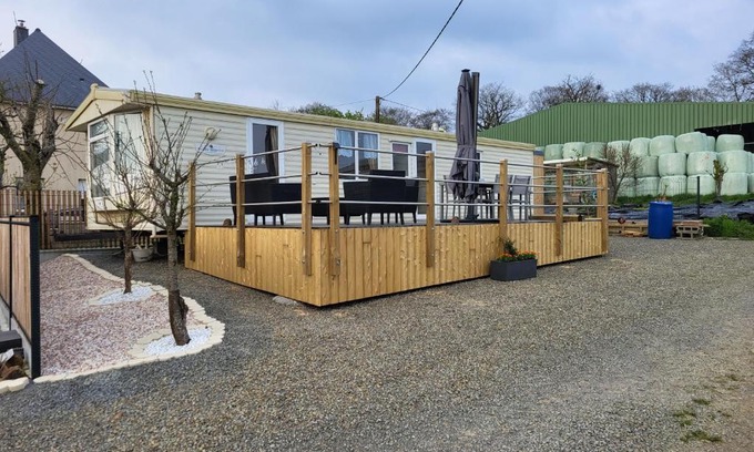 Mobil Home à la ferme offers accommodations in Le Neufbourg, 21 miles from Scriptorial d'Avranches, Musee des Manuscrits du Mont Saint Michel and 25 miles from Champrepus Zoo. This property offers access to a terrace, free private parking, and free Wifi. Towels and bed linen are offered in the farm stay. The accommodation is non-smoking. Jurques Zoo is 28 miles from the farm stay, while Fougères Castle is 27 miles from the property. Caen–Carpiquet Airport is 47 miles away.