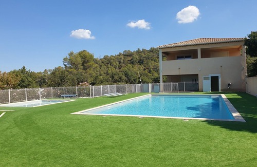 Yes, this Rocbaron house has a swimming pool. Check the Facility Overview section for details about the pool and other available facilities.