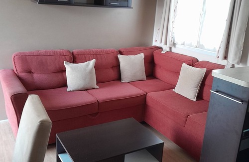 Spend a day at the nearby beach, relax by the communal pool, or sip a drink in the garden of this 312-sq-ft mobile home, which also features outdoor furniture. For a change of scenery, come inside and enjoy the TV.