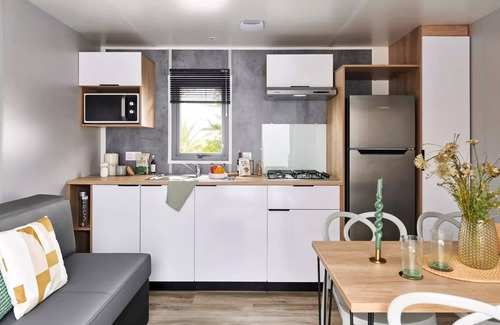 Mobil-home Prestige Duo - 2 bedrooms - 2 bathrooms - 2 WC - CLIM - TV + Dishwasher 6 persons is located in Pouzauges. Mobil-home Prestige Duo - 2 bedrooms - 2 bathrooms - 2 WC - CLIM - TV + Dishwasher 6 persons provides accommodation, featuring TV, Balcony/Terrace, Security/Safety, among other amenities. This House features TV, Balcony/Terrace, Security/Safety, to make your stay a comfortable one.