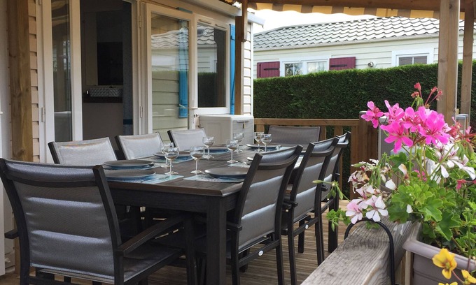 In the 4 * campsite Charmettes La Palmyre - Les Mathes (near Royan), we rent a mobile home of 40 m2 (3 bedrooms, 2 bathrooms, 2 toilets) installed on a plot without vis-à-vis near the aquatic complex, mini golf, mini market and tennis.
