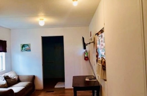 Mobile Home #93 at Tranquility Bay Resort includes: 1 Bedroom (1 King Bed), Small Kitchen, 1 Bath, Living room, overlooking the water. Sleeps 2.