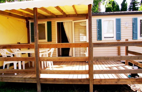 - Chalet in campingWell placed quietly, next to the pool, beautiful terrace in the shade