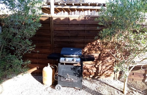 Air-conditioned accommodations at Mobile home in Ramatuelle - plaine de Pampelonne offer coffee/tea makers and irons/ironing boards. Kitchens offer refrigerators, stovetops, microwaves, and cookware/dishes/utensils.
