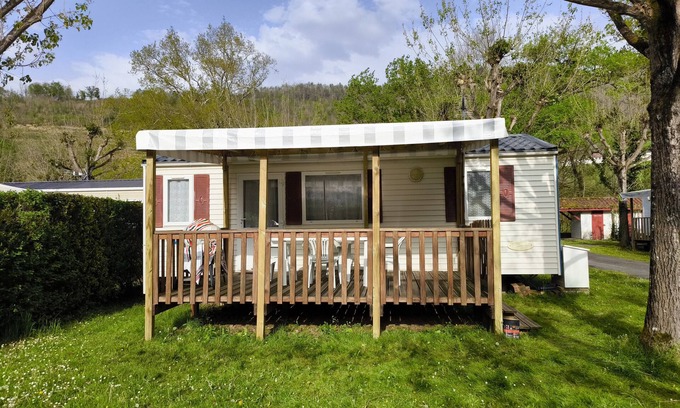 Mobile Home 'Mobile-home Camping De La Truite' with Mountain View, Private Terrace and Wi-Fi | RV Rental in ASCARAT