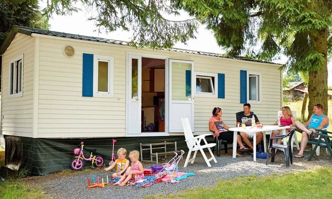 Set in the heart of the Belgian Ardennes, this detached mobile home offers a calm, rustic escape with everything you need for a rejuvenating stay. Enjoy slow mornings on the private terrace with garden furniture and parasol, or take a refreshing dip in the heated outdoor swimming pool. The surrounding green space is ideal for lounging, dining al fresco, or watching the stars after a day of adventure.