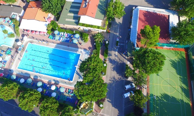 The detached mobilehome is furnished in a functional and typical country style. The property is located on a campsite. Also due to its location at the water the domicile is popular. Available for use: children's playground, barbecue facilities and terrace. +++ PETS: Small dogs are allowed (maximum shoulder height 30 cm). A vaccination certificate must be presented at check-in. Dogs must be kept on a lead at all times and wear a muzzle if necessary. Access to common areas and the pool area is not permitted. The campsite has a special dog walking area and a dog shower to ensure maximum comfort. +++Holiday resortcash machine, 1 restaurant, pizzeria, pool bar, internet (WLAN), supermarket and laundry. The campsite restaurant offers you a complete gastronomic experience: international dishes and fresh fish specialities prepared with care. There is also a delicious pizzeria and a pool bar, ideal for a snack or a relaxed aperitif. Open from 01/05/2025 to 21/09/2025, you will find a well-stocked market with food and camping items, a bazaar with sports and beach items and children's toys. At Camping Riccione you have free Wi-Fi with 90% coverage of the campsite. There is a free shuttle service to the town centre, the sea and the thermal baths, ideal for those who prefer not to use their car during their holiday (service available in high season). The shuttle bus stop for the beach is located in front of the public beach, near the affiliated bathing establishments. There is also an ironing service and an infirmary. LocationRiccione. The mobilehome is located on a campsite. Nestled in the heart of the Riviera Romagnola and a short distance from the Riccione thermal baths and the lively town centre, Camping Riccione is the ideal choice for those looking for a holiday full of relaxation, fun and authenticity. With its golden beaches, welcoming atmosphere and wide range of activities, the campsite is characterised by the quality of its services and attention to detail that will immediately make you feel at home. Parking (for 1 car) is available on the property. There is a charging station for electric cars on the property. Specialair conditioning.Facilities: baby cot, high chair, internet access (WLAN), washing machine and dryer.For your safety, the accommodation is equipped with CO2 detector and fire extinguisher. PoolAll pools are available for shared use. Outdoor pool (usable from early May to end of September). Children's pool (heatable). The campsite has an exceptional pool area designed for every need: A semi-Olympic pool, ideal for swimming and keeping fit; a heated children's pool with slides, waterfalls and water games, perfect for the little ones to have fun; and a heated jacuzzi, ideal for relaxing after a day in the sun. The sunbathing area, equipped with parasols and sunbeds, is the ideal place to relax, perhaps with a cocktail from the pool bar. In addition, the tropically designed solarium area offers a unique, exotic atmosphere. WellnessIn the complex: whirlpool. LeisureIn the complex: gym, tennis (1 court) and bike rental. Animation for children. Adult animation. For those looking for an active holiday, the beach offers numerous water sports such as surfing, kitesurfing, sailing, pedal boating and boat trips. Nearby you can also go inline skating, play beach volleyball and much more. The days at Camping Riccione are always exciting, thanks to a rich entertainment programme for adults, teenagers and children from 01/06/2025 to 07/09/2025: sports tournaments, team games and fun competitions. In the evenings, there will be dance shows, music and performances on a big screen in the specially equipped arena, as well as a mini-club for the little ones, where they can be creative, colour and play safely. Sports enthusiasts can play football, tennis, volleyball and use the fully equipped fitness centre. For quieter guests, the playground and games room offer relaxing leisure activities. Dogsallowed, EUR 5.00/pet per day. DistancesShopping 700 m, restaurant 350 m, town center 1,7 km. In summer: Adriatic Sea 650 m in Riccione (beach 650 m in Riccione featuring sand). Your holiday by the sea has never been easier. The beach offers both free and equipped areas. Thanks to an exclusive agreement with the Mario's (nos. 17 and 19) and Pedra del Sol (no. 18) bathing establishments, parasols and sunbeds can be booked directly. DivisionMobilehome, 1 floor, 3 rooms (including 2 bedrooms), 25 sqm, in total 5 beds (including 1 additional bed). Room Living room with 1 additional bed on couch/sofa, TV, dining area (5 seats) and access to the terrace (covered, garden furniture, 1 table, 2 chairs, 2 sunbeds). Bedroom with 2 single beds. Bedroom with 1 double bed. Cooking nook in the living room with gas stove and fridge (icebox). Bathroom with shower, 1 washbasin and WC. Terms of lease and pricesIncluded in the priceOutdoor pool, internet access, parking place, electricity, gas, water. Side costs-Costs on the spot:/Obligatory:final cleaning if pets 20 € per object per stay. final cleaning (if not performed by the tenant) 40 € per object per stay. local tax by local tariff (if charged).On request:air conditioning 5 € per object per day. Bed linen (please order at booking) 20 € per person per first time use and changing. Towels (please order at booking) 10 € per person per first time use and changing. baby cot – please order at booking 3 € per bed per day. high chair - please order at booking 3 € per piece per day. For a fee: parking place (additionally).Deposit:EUR 100,-/object
