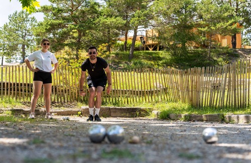 "Mobilhome Luxe 4 personnes 2 chambres", 3-room mobile home 32 m2. Comfortable furnishings: living/dining room with dining table and TV (flat screen), air conditioning. Exit to the terrace. 1 room with 1 french bed (1 x 160 cm, length 200 cm). 1 room with 2 beds (80 cm, length 190 cm). Kitchenette (dishwasher, 4 gas rings, toaster, kettle, microwave, freezer, electric coffee machine, Capsules for coffee machine (Nespresso)). Shower, sep. WC. Electric heating. Large terrace partly roofed. Terrace furniture, barbecue, deck chairs. Facilities: children's high chair, baby cot for up to 2 year olds. Parking (1 car). Please note: non-smokers only. Maximum 1 pet/ dog allowed. Smoke alarm. Offer by a commercial proprietor according to Art. 155, IV, CGI