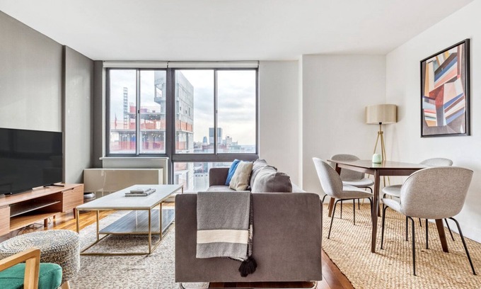 Gorgeous furniture, fully equipped kitchen, smart TV, and a premium wireless speaker are just a few of the amenities you’ll find inside this one bedroom apartment. Ideally located in New York, you’ll find a lot to love outside as well. When you’re ready to relax, you’ll be happy to discover every Blueground bedroom comes with superior quality mattresses, luxury linens, and cozy towels. We handle everything so you can simply show up and start living. This apartment also offers in-apartment laundry.