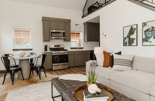 This property boasts two separate living spaces. The main floor has a king bed, walkin closet for plenty of storage, and a full bath. The loft space has a queen bed with twin bed trundle as well as a full bath. The Bird House sleeps up to 5 and would be a good fit for friends, couples, or a family with school age children. You will find a well equipped kitchen with quality appliances, utensils and cookware to fix your favorite homemade meals. Enjoy coffee in the dining area, relax in the cozy living room with gas fireplace and stream movies for a night in. In the summer, lounge on the lovely outdoor deck for an evening BBQ and sunset. This bungalow has peekaboo views of the mountains facing West. If you bring your kayak or paddle board, you are steps away from loading into the estuary. Stay a few days or a few weeks, a washer and dryer are available on site.