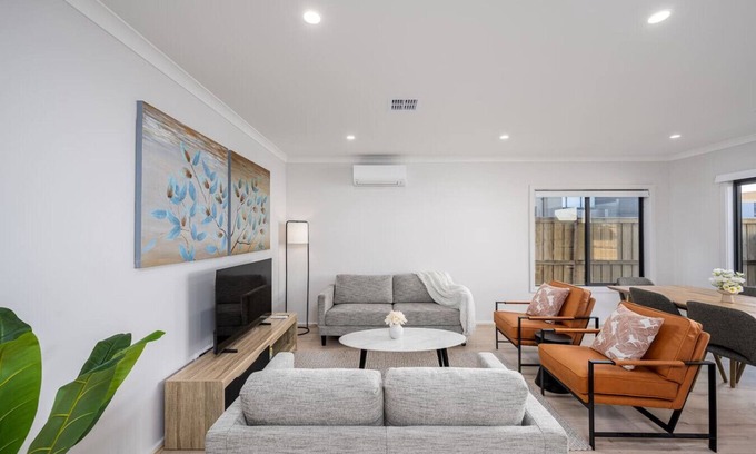 Welcome to our brand new, modern 4-bedroom home in the prestigious Modeina Estate – a peaceful enclave of creekside living embraced by nature on three sides. Just 24km from Melbourne Airport and 29km to the CBD. Enjoy easy access to walking and bike tracks, scenic wetlands, Burnside Hub, and Caroline Springs Town Centre shopping precincts. Ideal for families or groups seeking comfort and space in a tranquil yet connected location.