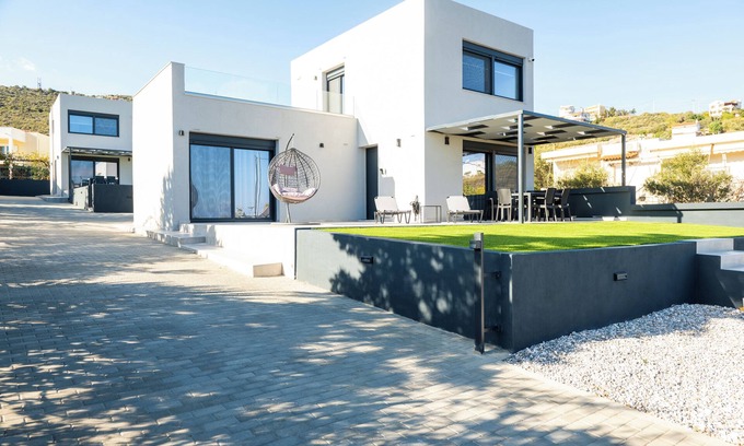 Moderene Villa mit Meerblick Mit Grosser Terasse und Balkon Neubau | Villa in AKTI NIREOS ALIVERI