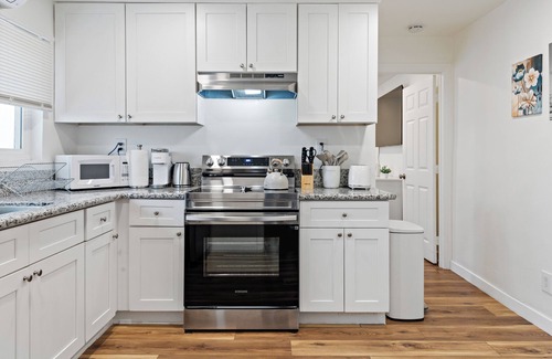 This stylish 1-bedroom haven offers a warm, inviting atmosphere perfect for couples or business travelers where you can also relax and unwind in the peaceful backyard.