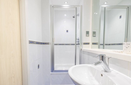 The spacious double bedroom features an on suite bathroom with full wall length mirrors, walk in wardrobe for all your storage space, Ottoman bed for extra storage space for your clothes and cozy hotel bed linen for pleasant nights sleep. The modern and clean bathroom has a shower, toilet and sink as well as complimentary toiletries and fluffy towels for your use.